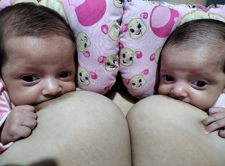 E o que faltava era amamentar pelo menos até os 6 meses e Deus me agraciou com as gêmeas que queríamos tanto um bebê e Deus na sua infinita bondade nos mandou logo duas princesas,